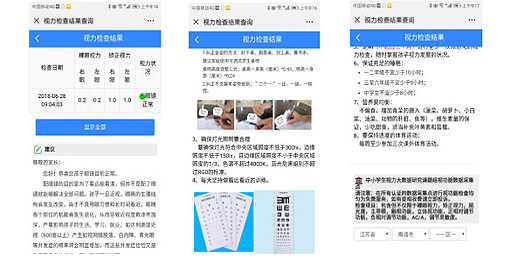 數據信息查詢、視力檢測統計、視力走勢分析